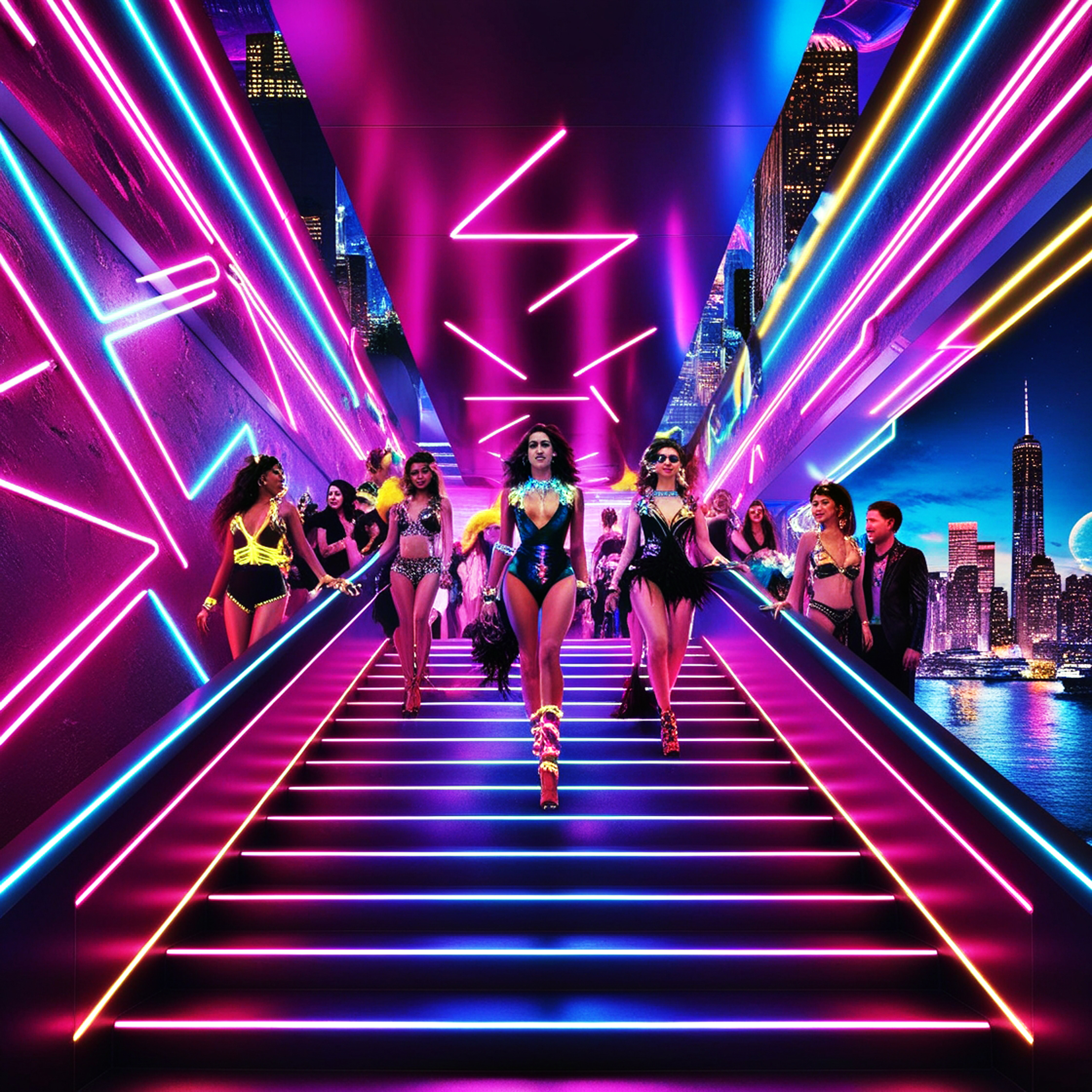 Unique dance sets that blend fashion, music, and light.